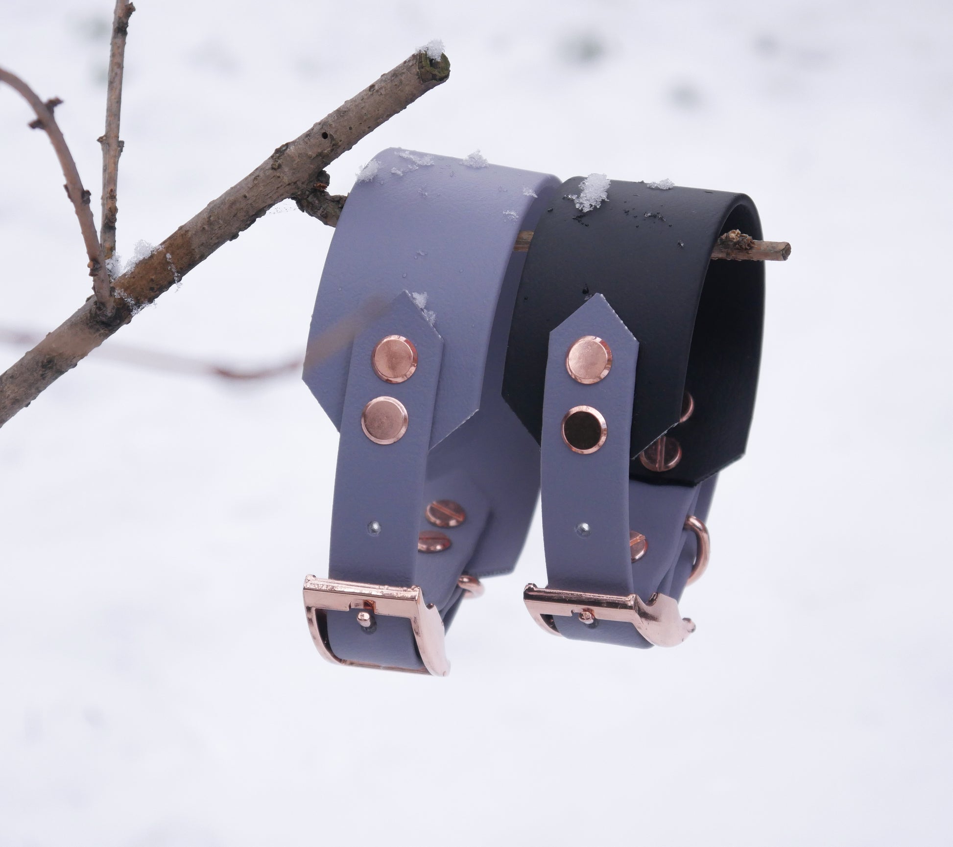 Biothane ist ein robustes, wetterfesten Material. Dennoch angenehmen und weich in der Handhabung und eine gute Alternative zu Leder. Es ist zudem sehr leicht mit Wasser zu reinigen. Die Beschläge für das Halsband können in Roségold, Gold oder Silber gewählt werden.