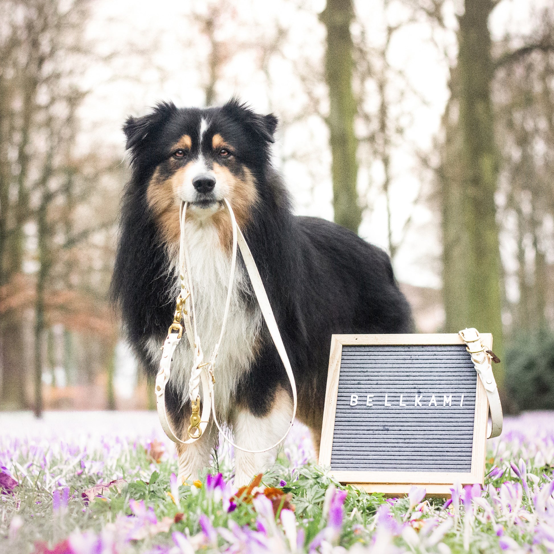 Biothane is a robust material and a good alternative to leather. It is also very easy to clean with water. The fittings for the collar can be chosen in rose gold, gold or silver.