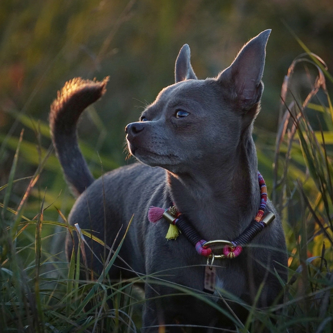 Our Cusco branded collar from the Essence of Peru collection consists of a colored textile band with a thickness of 6 mm and is decorated with matching tassels.