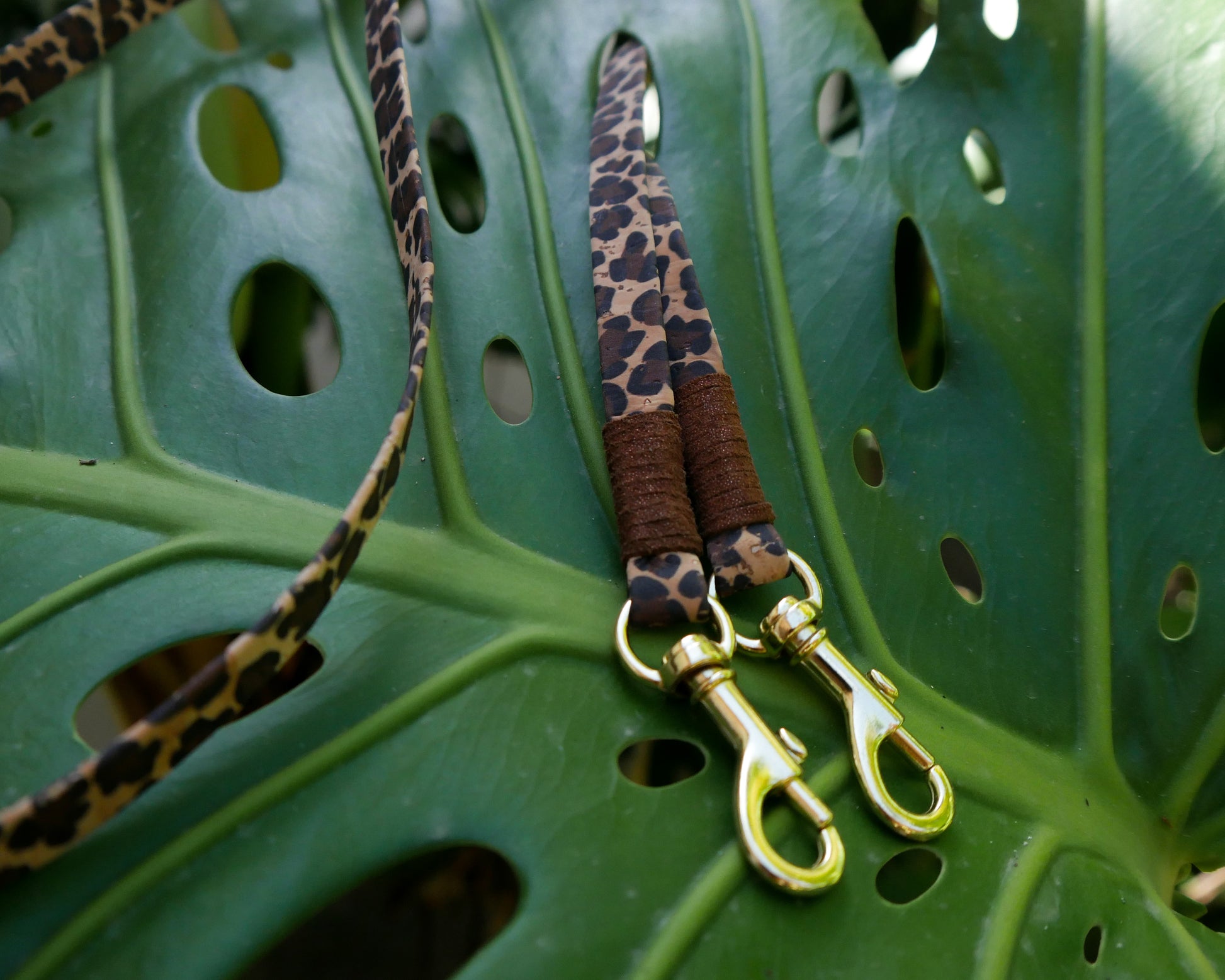 The flat cork strap has a thickness of 10 mm and is decorated with golden elements. The length is 120 cm. Too short? Write us your desired length.