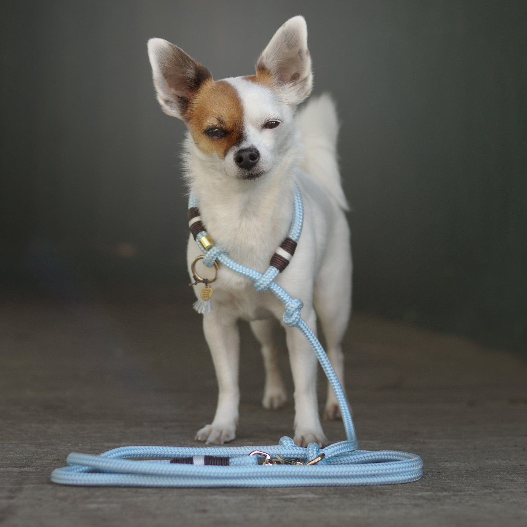 We always adjust the rope strength and the carabiner size of the leash to the size of the dog.