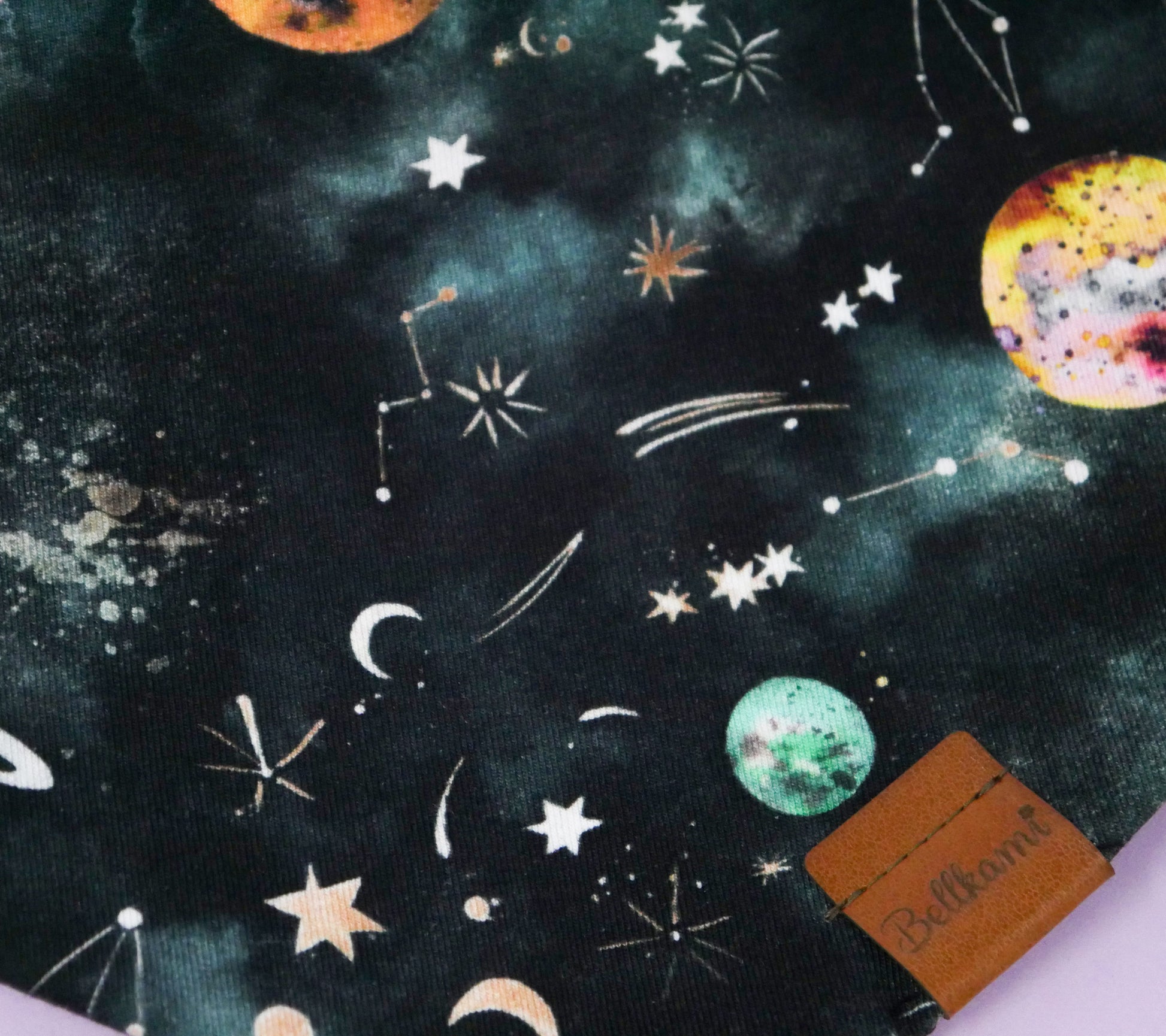 Unsere Bandanas sind in 5 cm Abständen, insgesamt auf 10 cm verstellbar und somit sehr praktisch anpassbar. Dieses Bandana besteht zu 100% aus Jerseybaumwolle. Es kann beidseitig getragen werden und trägt unser veganes "Bellkami" Logo. Die Druckknöpfe sorgen für einen einfache Anwendung.