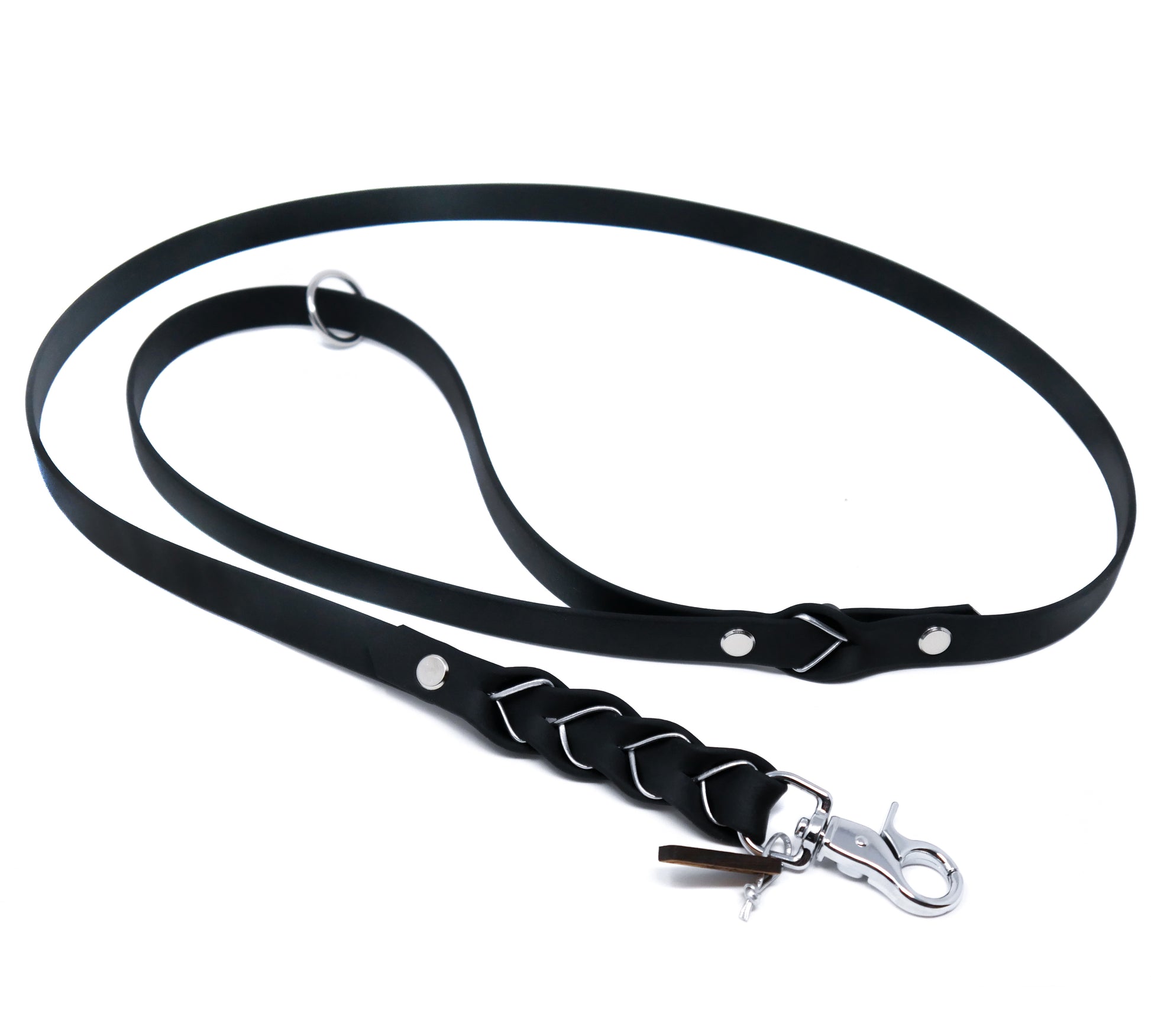 Unsere Biothane Deluxe Leine besteht aus einem wetterfesten und angenehmen Material. Die Leine kann in verschiedenen Ausführungen angefertigt werden (verstellbar/nicht verstellbar). In dieser Leine wird eine dekorative Flechtung integriert. In der Flechtung wird dann ein Schmuckband, passend zu den Beschlägen, eingearbeitet.