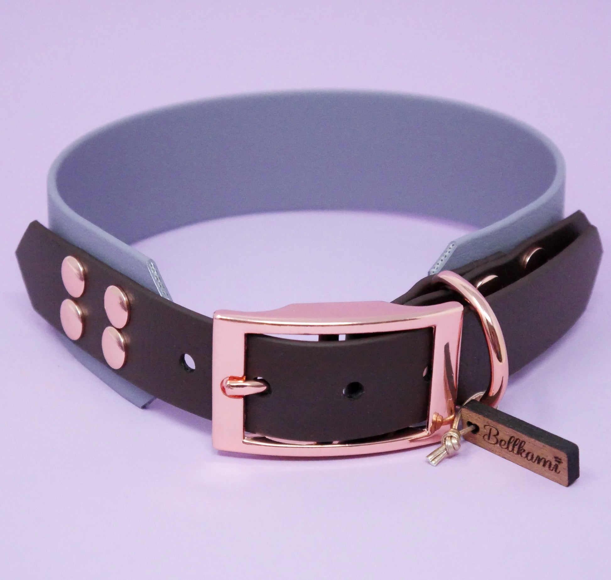 Biothane ist ein robustes, wetterfesten Material. Dennoch angenehmen und weich in der Handhabung und eine gute Alternative zu Leder. Es ist zudem sehr leicht mit Wasser zu reinigen. Die Beschläge für das Halsband können in Roségold, Gold oder Silber gewählt werden.