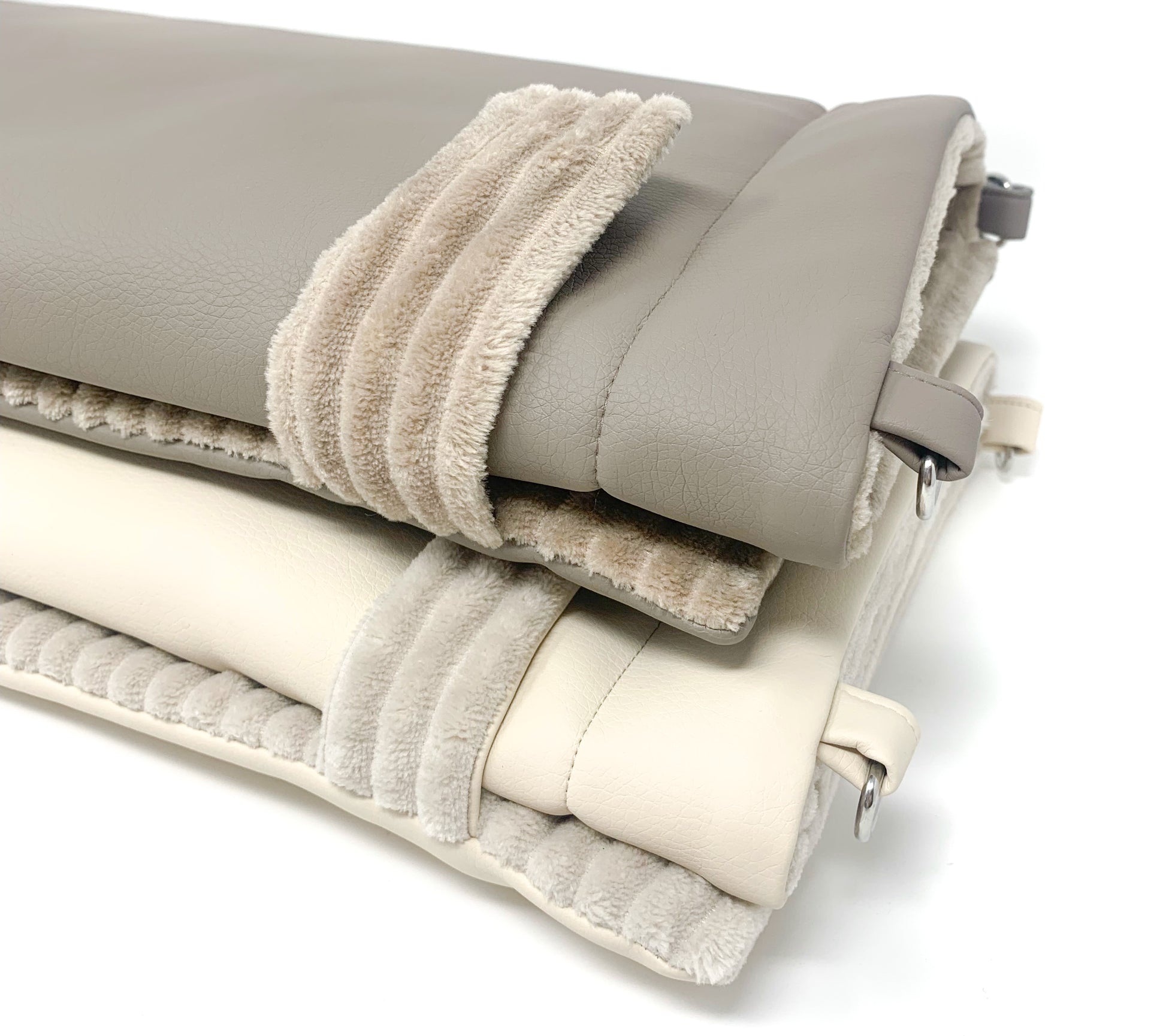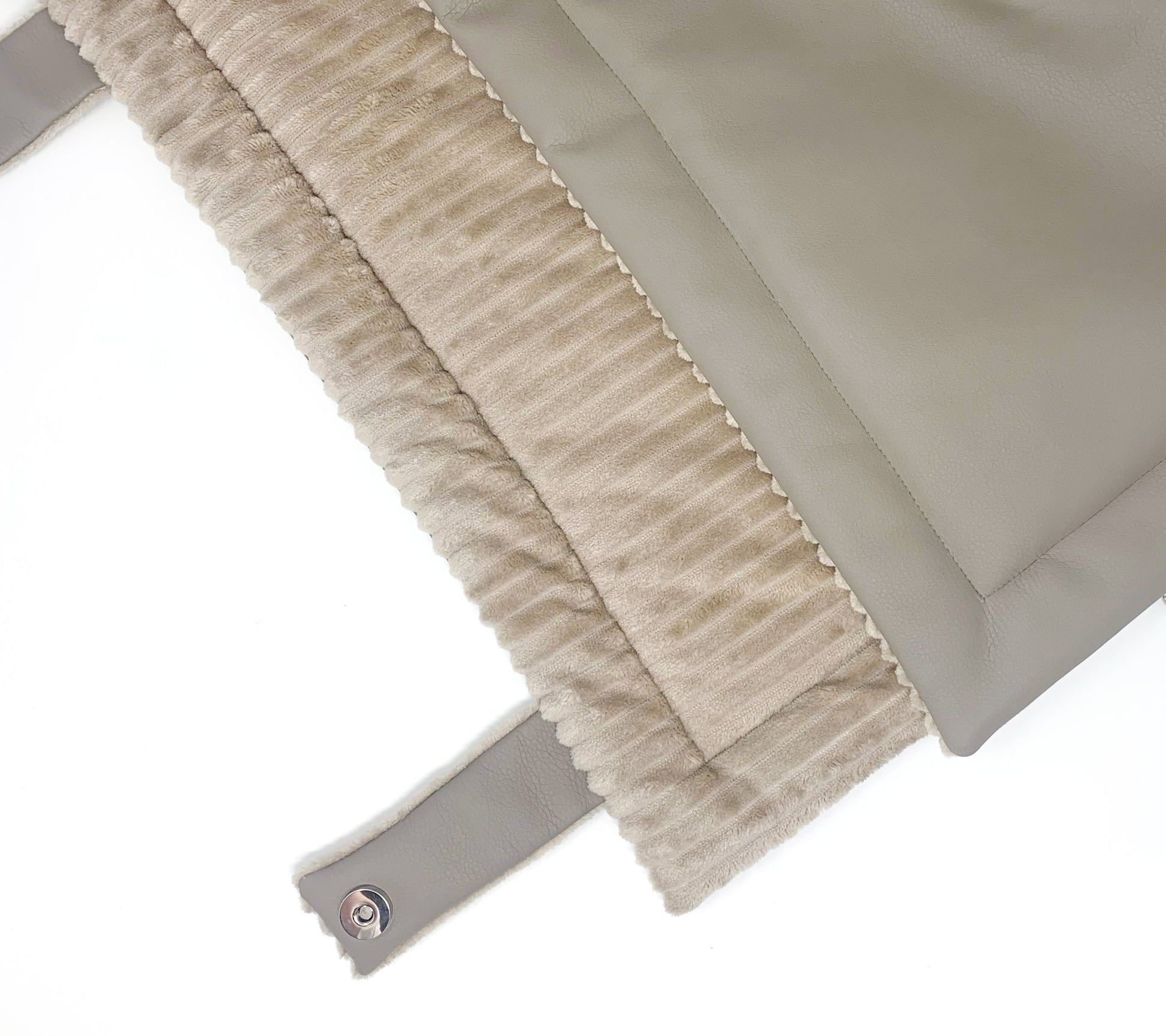 - Die Decken sind auf der einen Seite mit samtig flauschigen Fleece verarbeitet und auf der anderen Seite mit Kunstleder versehen. Dies verhindert das leichte anheften von Dreck und Schmutz. Perfekt für unterwegs!