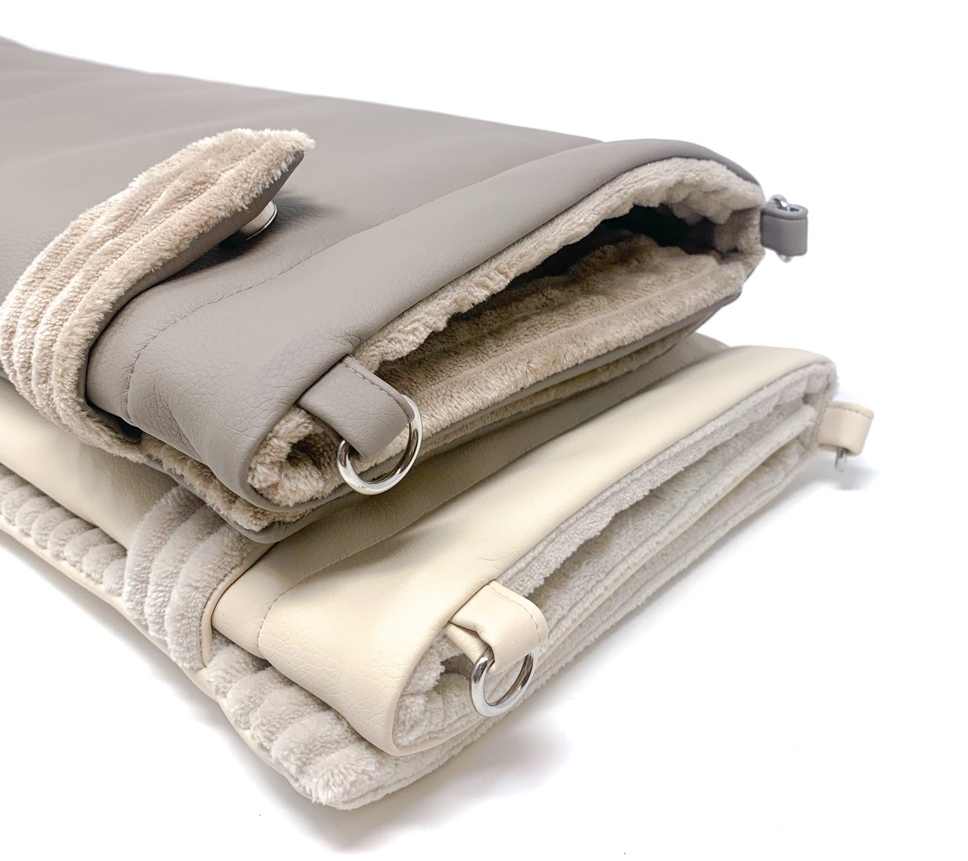 - Zwei Schnallen mit Magnetverschluss sorgen für ein einfaches zusammenfalten und schließen der Decke.