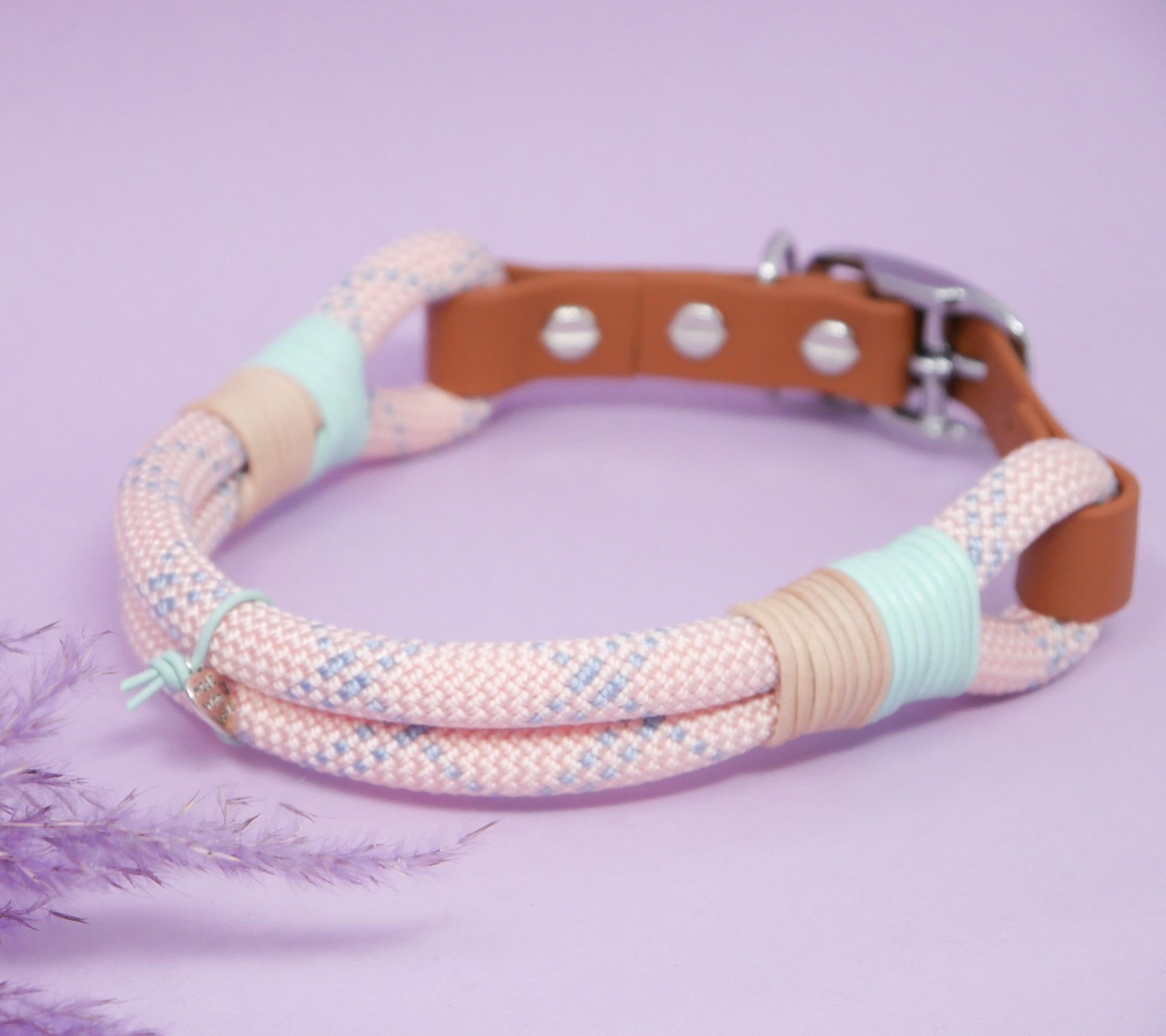Unser Traveller Halsband besteht aus einer edlen Kombination aus Biothane und Kletterseil. Diese Kombination macht das Halsband sehr robust. Der Biothane Adapter und das Kletterseil - einem wetterfestem Material - lassen sich problemlos mit Wasser reinigen.